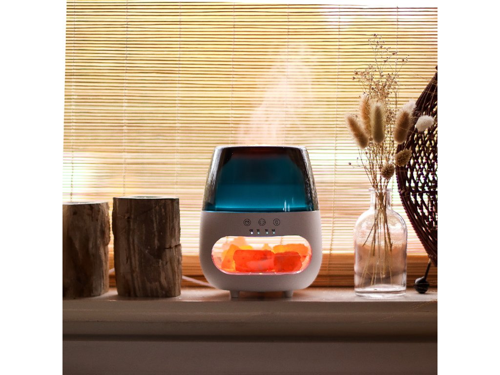 Spája elegantný dizajn s wellness technológiou. Vďaka farebnému LED osvetleniu, zabudovanému časovaču a napájaniu cez USB-C ponúka atmosféru aj funkčnosť.