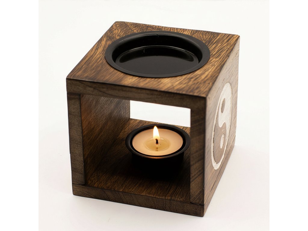 AWM Štvorcová Aroma Lampa z Mangového Dreva - Yin Yang 1ks