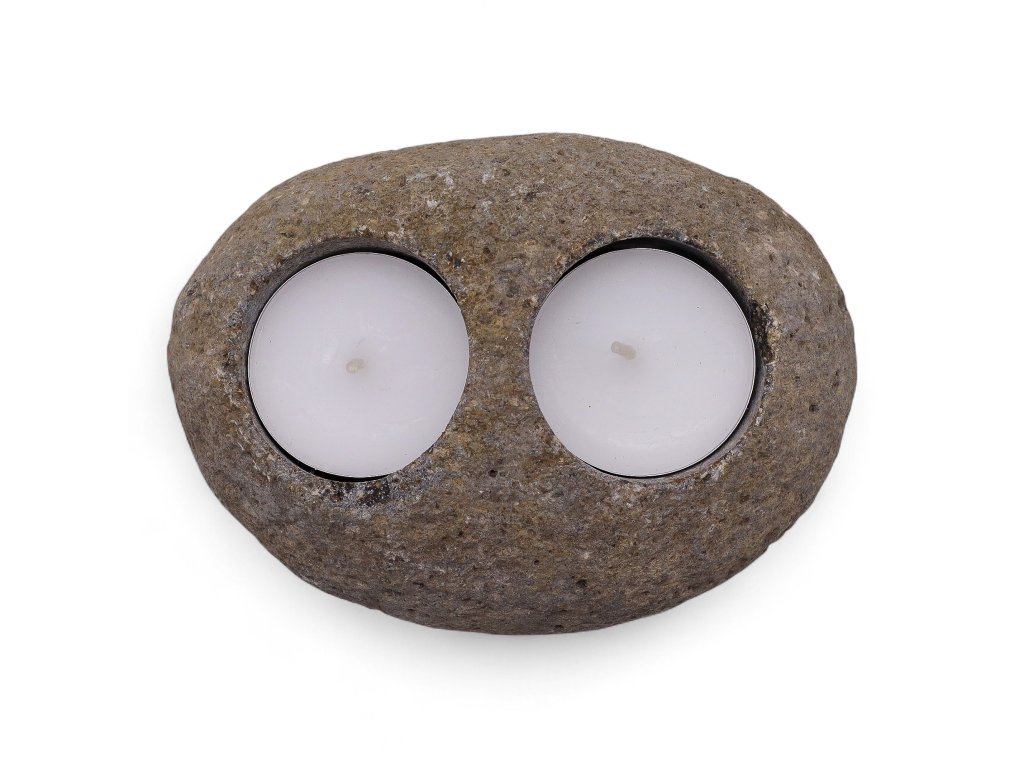 AWM Svietnik z Prírodného Riečneho Kameňa - Dve Sviečky 1ks
