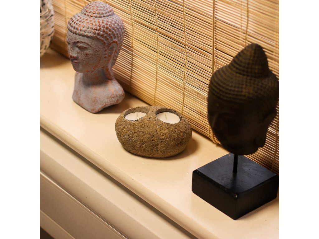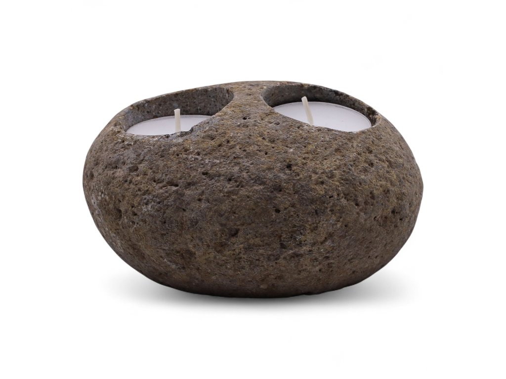Každý kus je originál, ktorý odhaľuje prirodzenú štruktúru a farebné odtiene kameňa, z ktorého bol vytesaný. Navrhnutý na dve čajové sviečky, je ideálny na vytvorenie jemnej, upokojujúcej atmosféry – skvele sa hodí do relaxačných kútikov, wellness aranžmánov či darčekových kolekcií inšpirovaných prírodou.