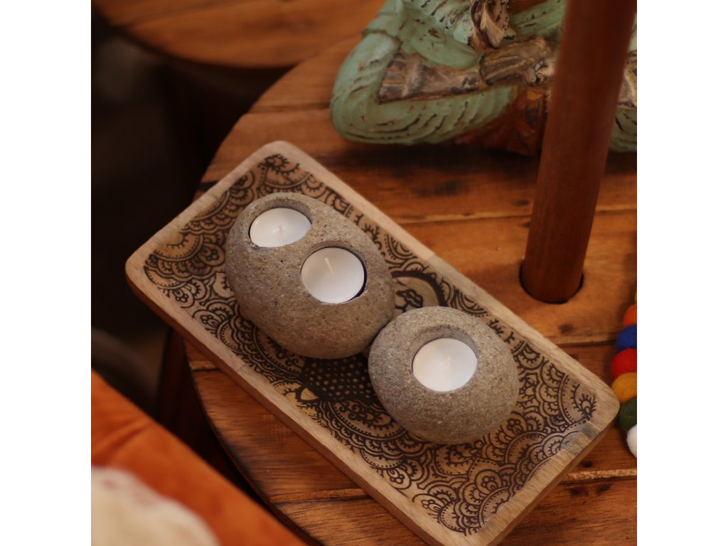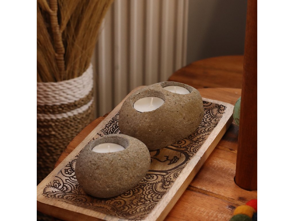 Vyrobený z pravých riečnych kameňov v Indonézii, každý jednotlivý svietnik na čajovú sviečku oslavuje krásu prírody v jej najčistejšej podobe.