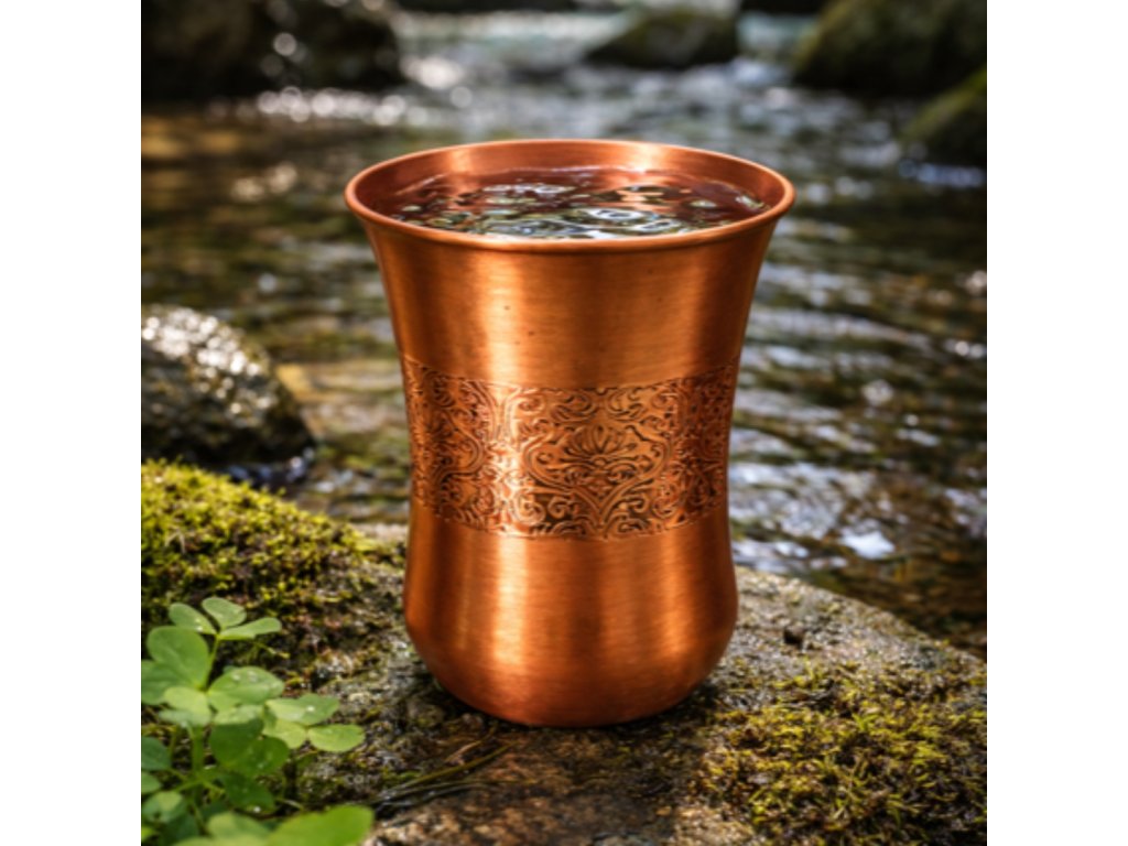 Ayurvéda už od staroveku obhajuje výhody pitia vody z medených nádob na pitie. Ajurvéda uvádza, že udržiavanie vody v medenej fľaši alebo pohári počas 8-10 hodín má vyrovnávací účinok na tri bioenergie (dóše), ktoré cirkulujú ľudským telom (Vata: element vzduchu, Pitta: element ohňa a Kapha: element vody). Okrem toho sa voda v medených nádobách na pitie stáva prirodzene zásaditou, čo pomáha udržiavať vyváženú hladinu pH. Prečítajte si viac tu.