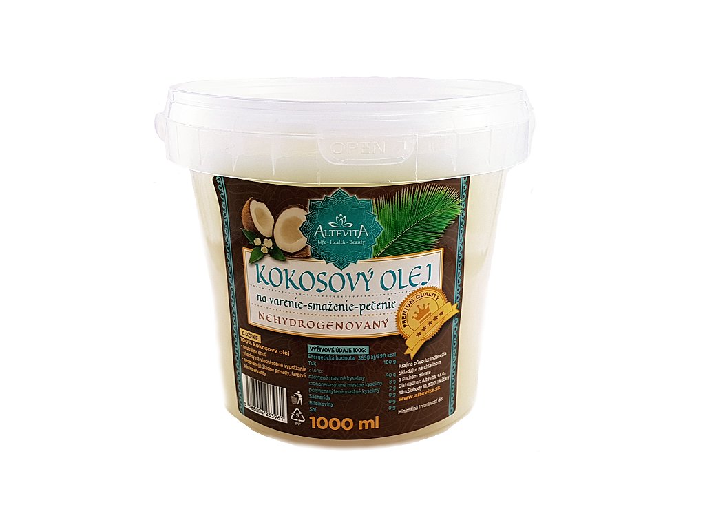 Kokosový olej – na vaření, smažení, pečení. Nehydrogenovaný.