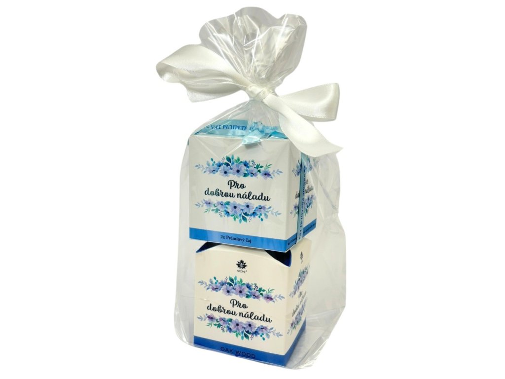 Tato dárková sada je skvělý nápad, jak někomu vykouzlit dobrou náladu. Zaručeně udělá radost a navíc vám ušetří čas s balením. Souprava obsahuje lahodný zelený čaj a svíčku v dárkové krabičce s nápisem „Pro dobrou náladu“. Vše je navíc vkusně zabaleno do celofánu a připraveno přímo k darování.