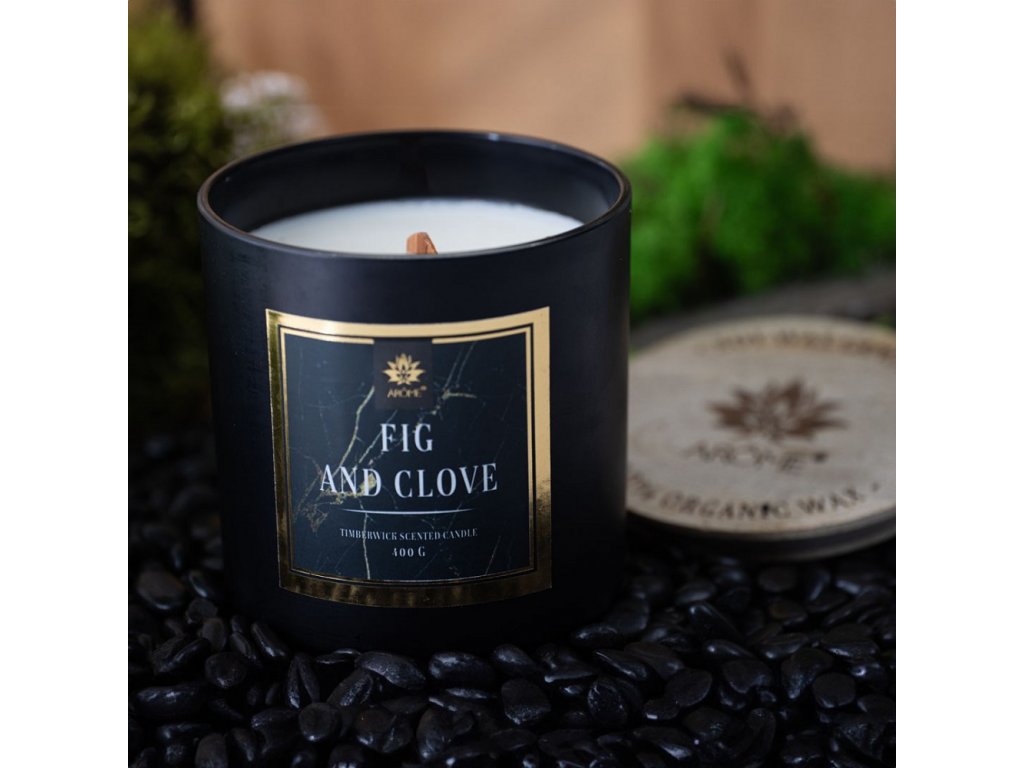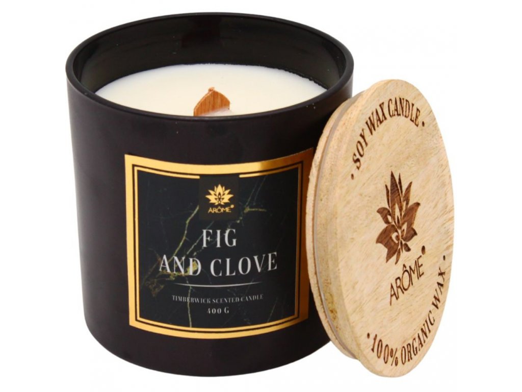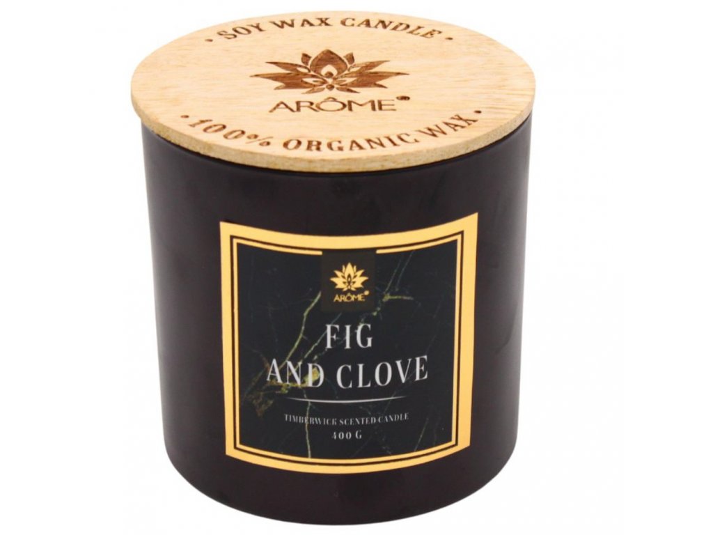 ARÔME Svíčka s dřevěným knotem a víčkem, Fík a Hřebíček 400 g