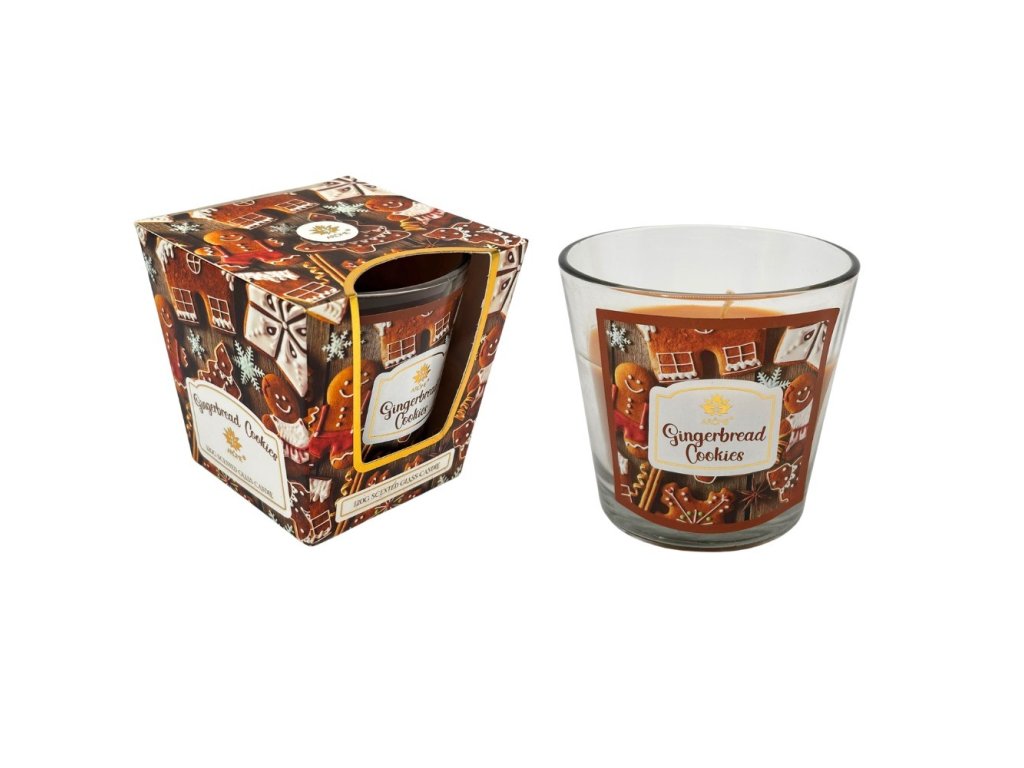 Vonná svíčka ve skle s vůní perníčků. Hmotnost 120 g. Doba hoření 34 hod.