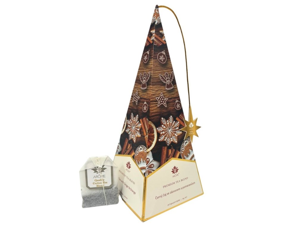 Černý čaj ze Srí Lanky ochucený pomerančem a zázvorem. Složení čaje: Černý čaj 95 %, pomerančové aroma 2 %, zázvorové aroma 1,5 %, pomerančová kůra 1,5 %