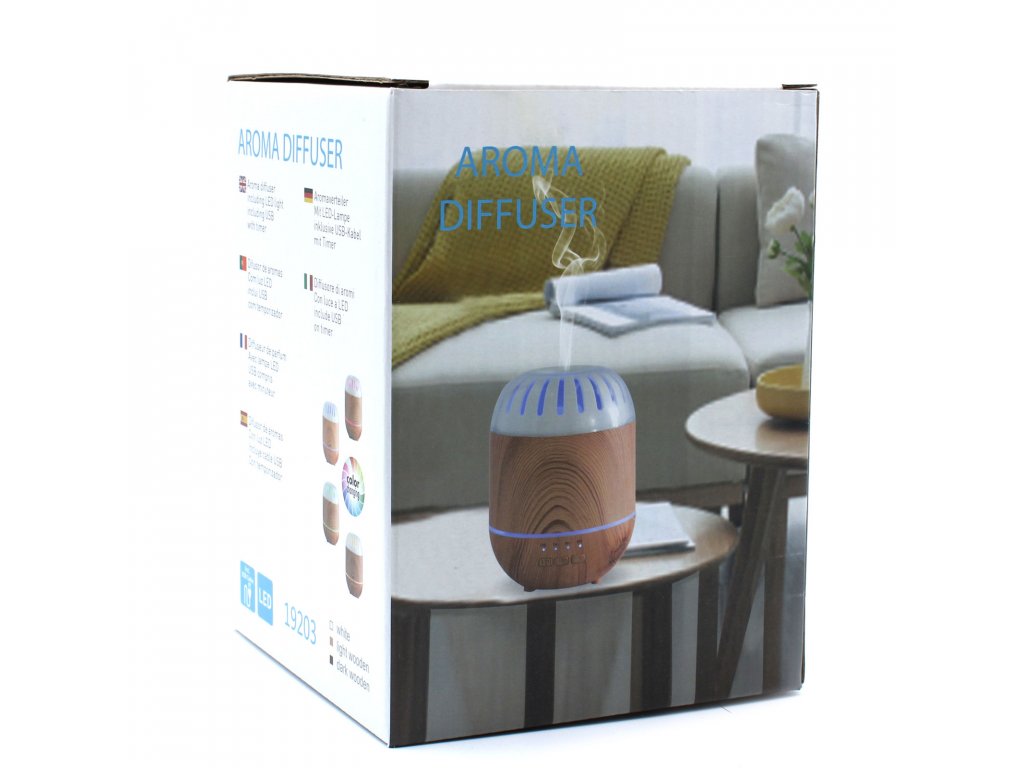 Difuzér používá ultrazvukový motor, takže je během používání velmi tichý. Difuzér je napájen přes USB, které lze připojit k nabíječce mobilního telefonu nebo notebooku. Jemné světlo navodí příjemnou relaxační atmosféru.