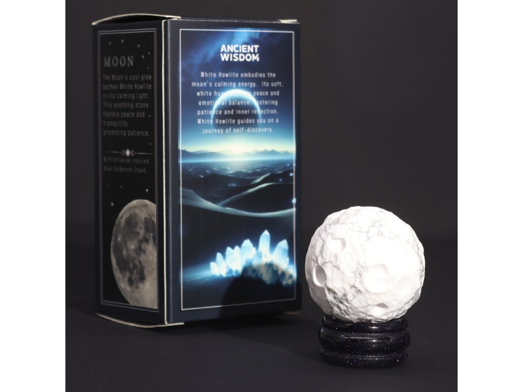 Bílý howlit ztělesňuje uklidňující energii Měsíce. Jeho jemné bílé odstíny podporují klid a emocionální rovnováhu, podporují trpělivost a vnitřní reflexi. Bílý howlit vás provede cestou sebepoznání.