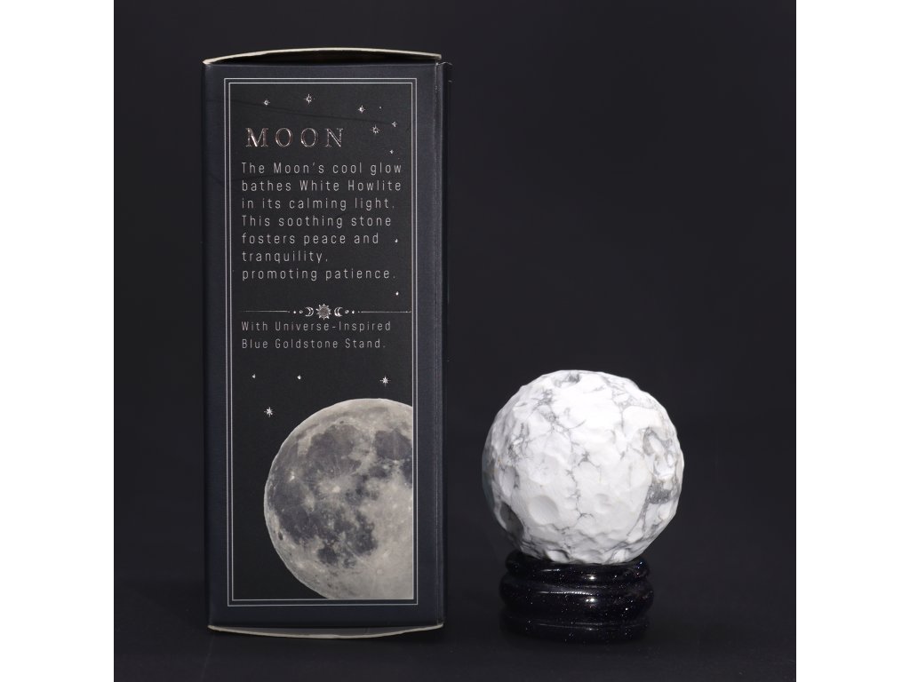 AWM Bílý Howlit na solárním stojanu ze zlatého kamene - Měsíc 40 mm 1 ks