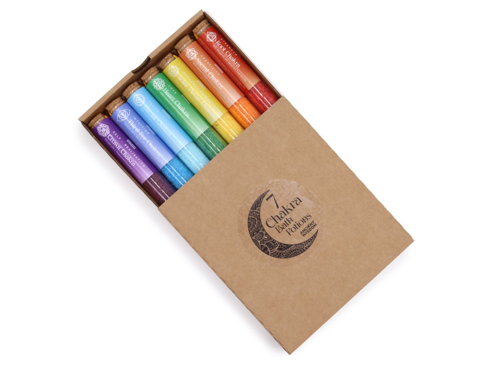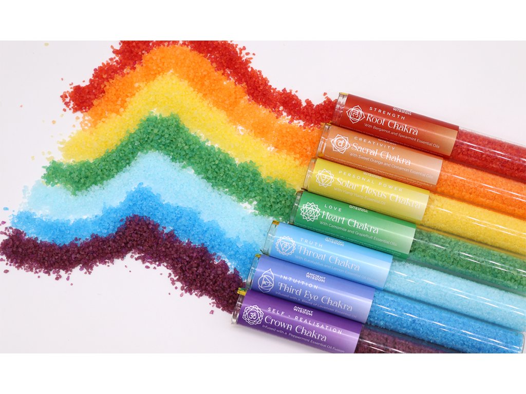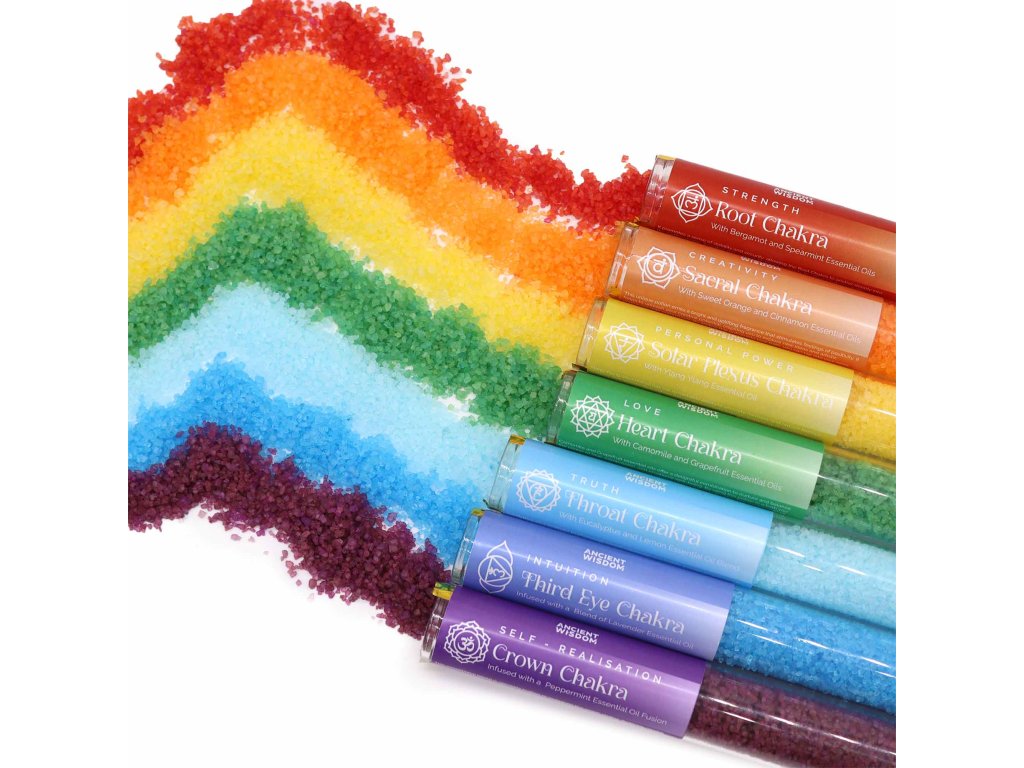 Tato exkluzivní kolekce obsahuje sedm různých koupelových solí, z nichž každá je přizpůsobena konkrétní čakře. Vyrobeno z kvalitních esenciálních olejů.