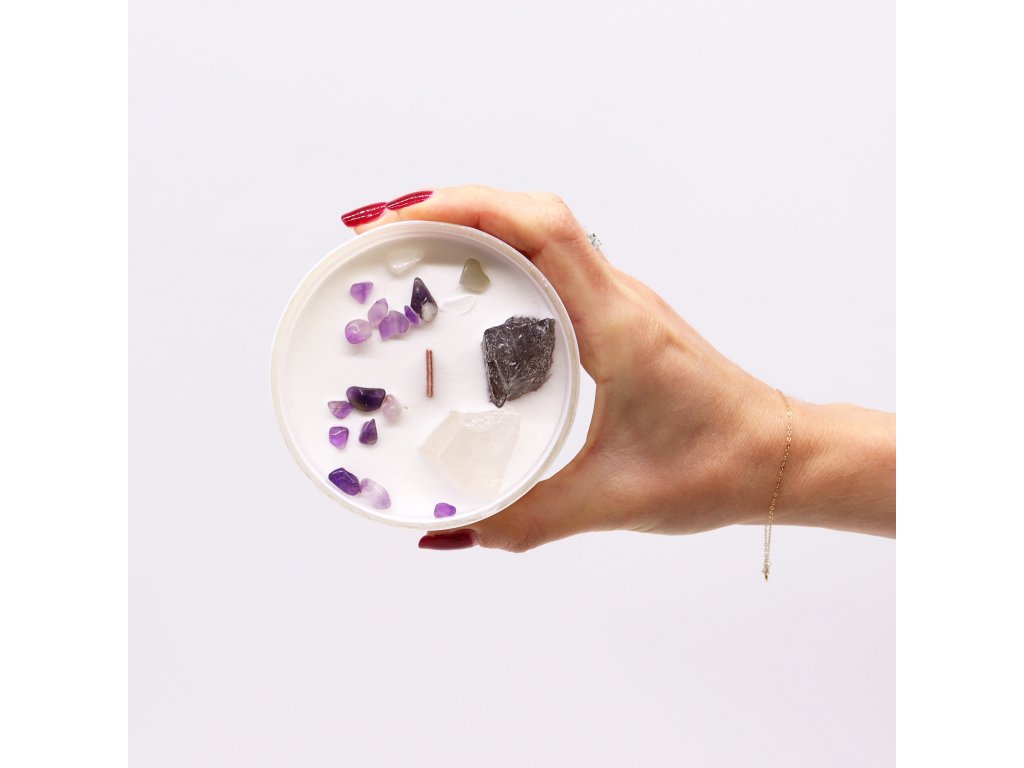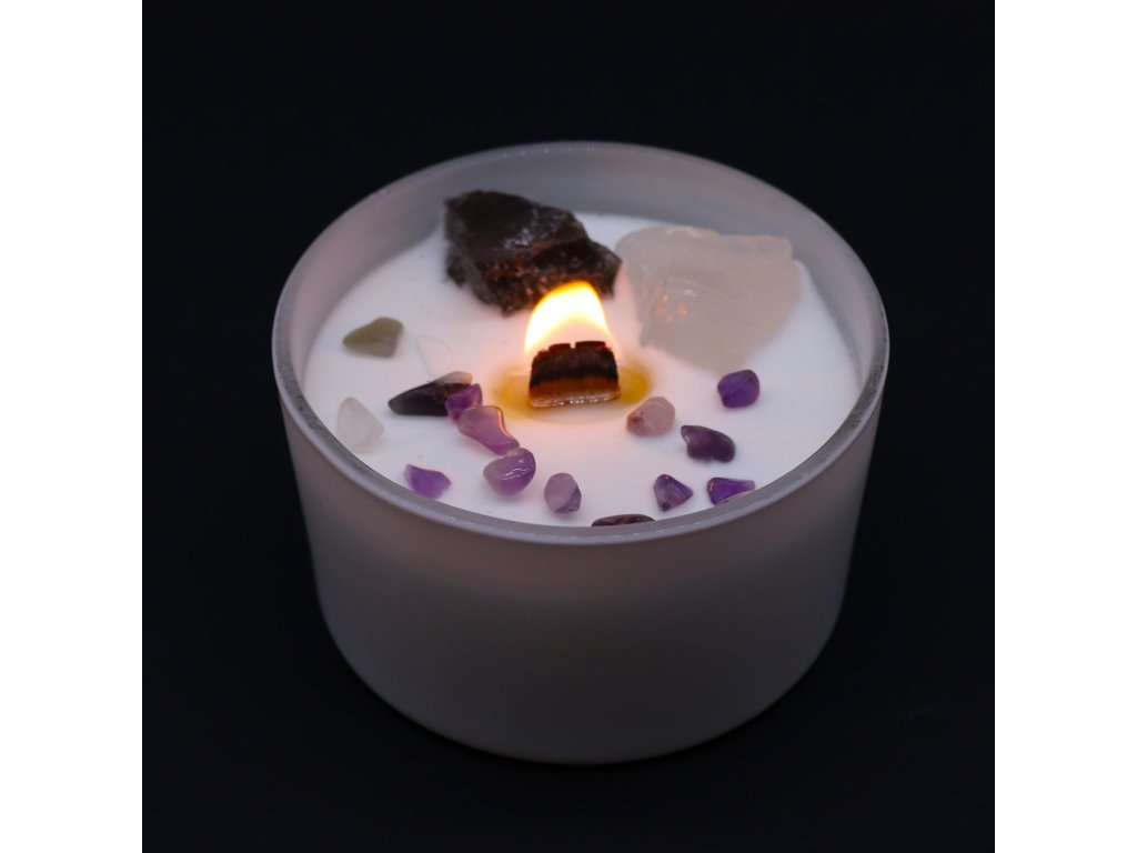 Zapalte tuto svíčku, abyste získali přístup k božské moudrosti, překonali pozemské starosti a zažili duchovní transcendenci. Když zapálíte svíčku, ucítíte léčivou energii krystalů a uklidňující vůni speciálně namíchané vůně. Po spálení této svíčky je možné nádobu znovu použít a můžete očistit a ponechat si krystaly.