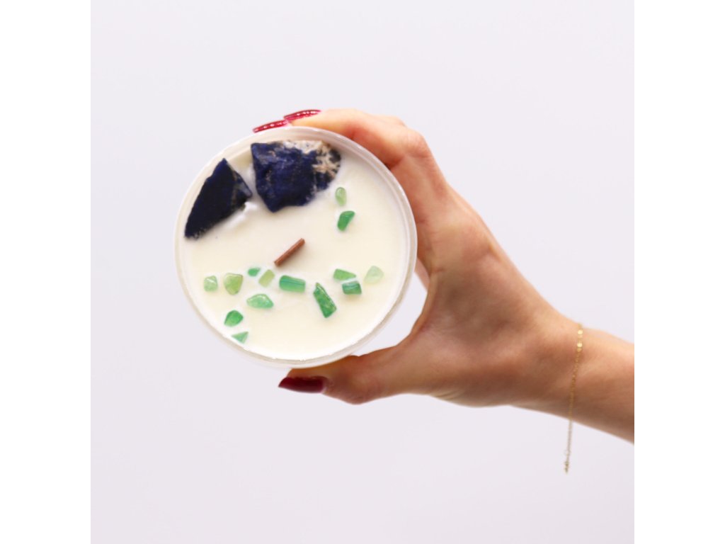 Zapalte tuto svíčku, abyste posílili svou komunikaci, vyjádřili svou pravdu a posílili svůj hlas. Když zapálíte svíčku, ucítíte léčivou energii krystalů a uklidňující vůni speciálně namíchané vůně. Po spálení této svíčky je možné nádobu znovu použít a můžete očistit a ponechat si krystaly.