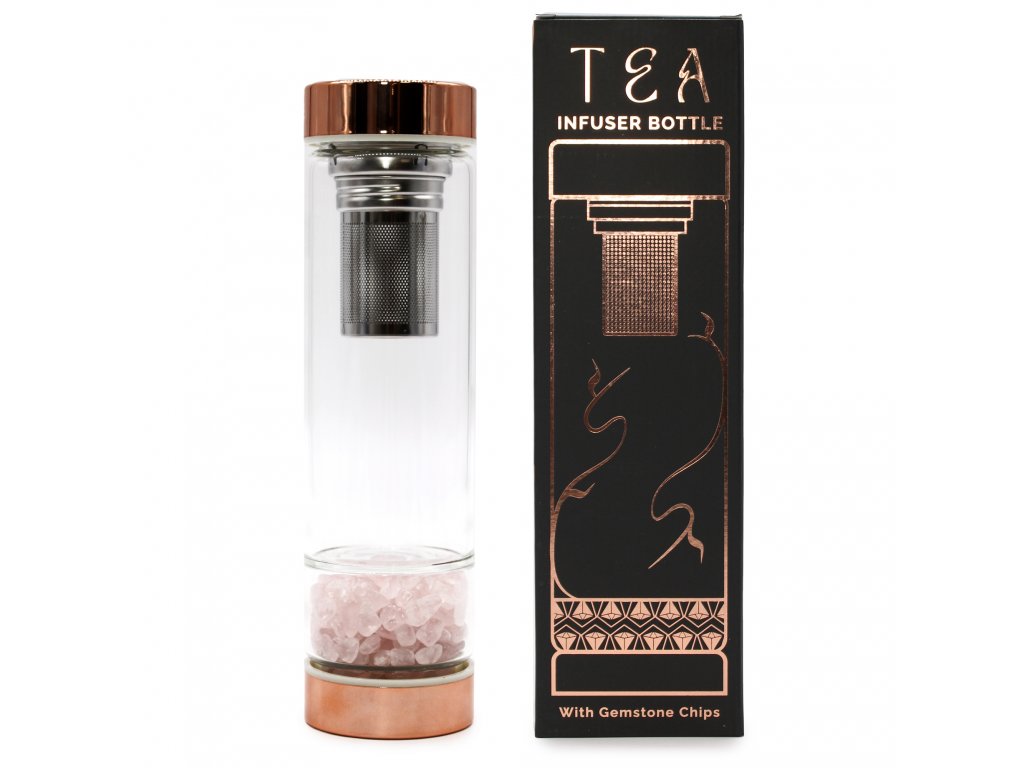 S uzávěry z růžového zlata a výběrem krásných drahokamů dodávají zážitku z pití čaje nádech luxusu. Naše lahve jsou vyrobeny z kvalitního borosilikátového skla, které je známé svou trvanlivostí a odolností vůči vyšším teplotám.