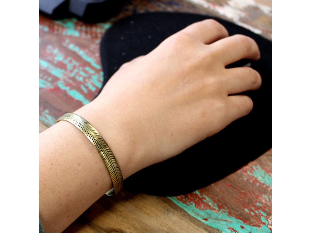AWM Mosazný Tibetský Náramek - Tribal List - Široký 1 ks