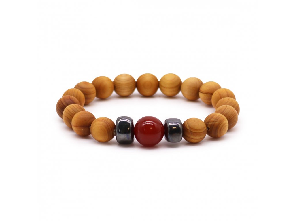 AWM Náramek kořenové čakry z cedrového dřeva s červeným jaspisem 1 ks