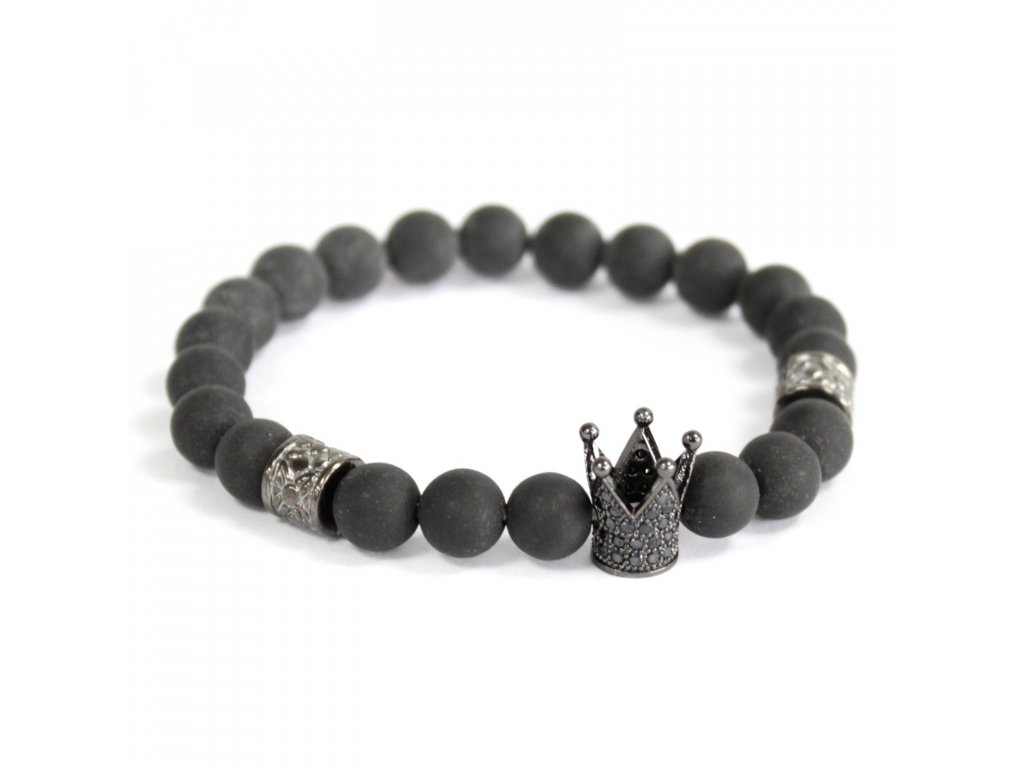AWM Náramky z drahých kamenů Křišťálová Koruna / Černý Achát 1 ks