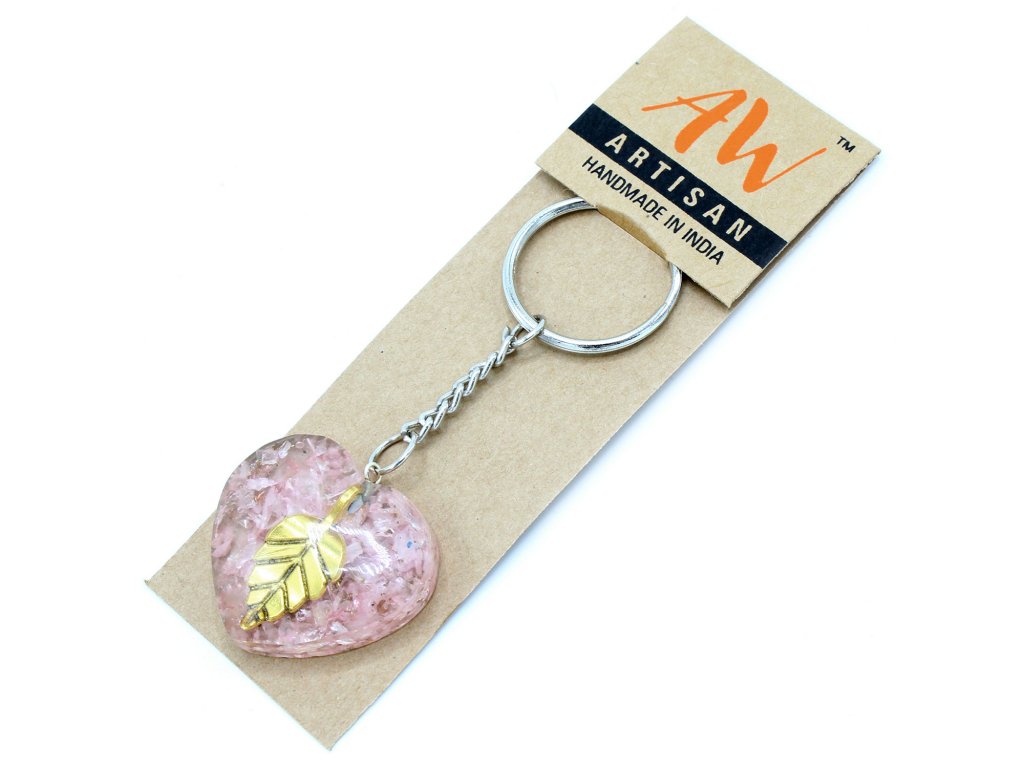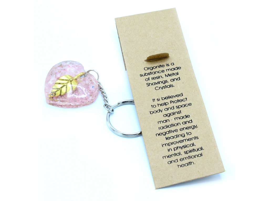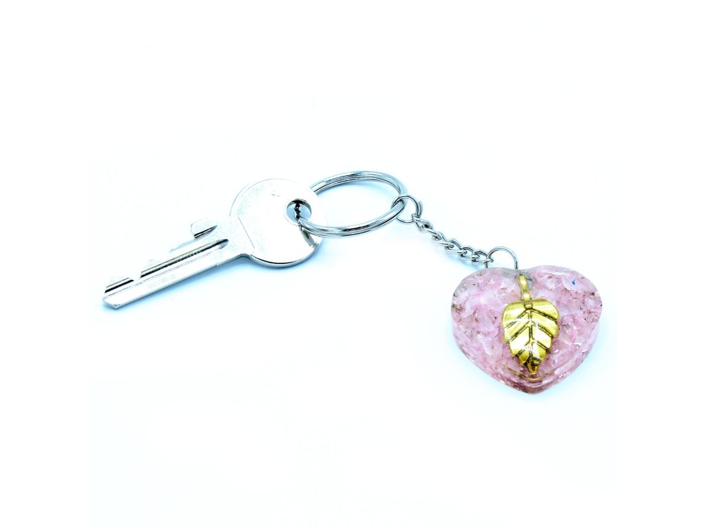 AWM Orgonitový Přívěsek na Klíče - Srdce - Růženín a Zlatý List 1 ks