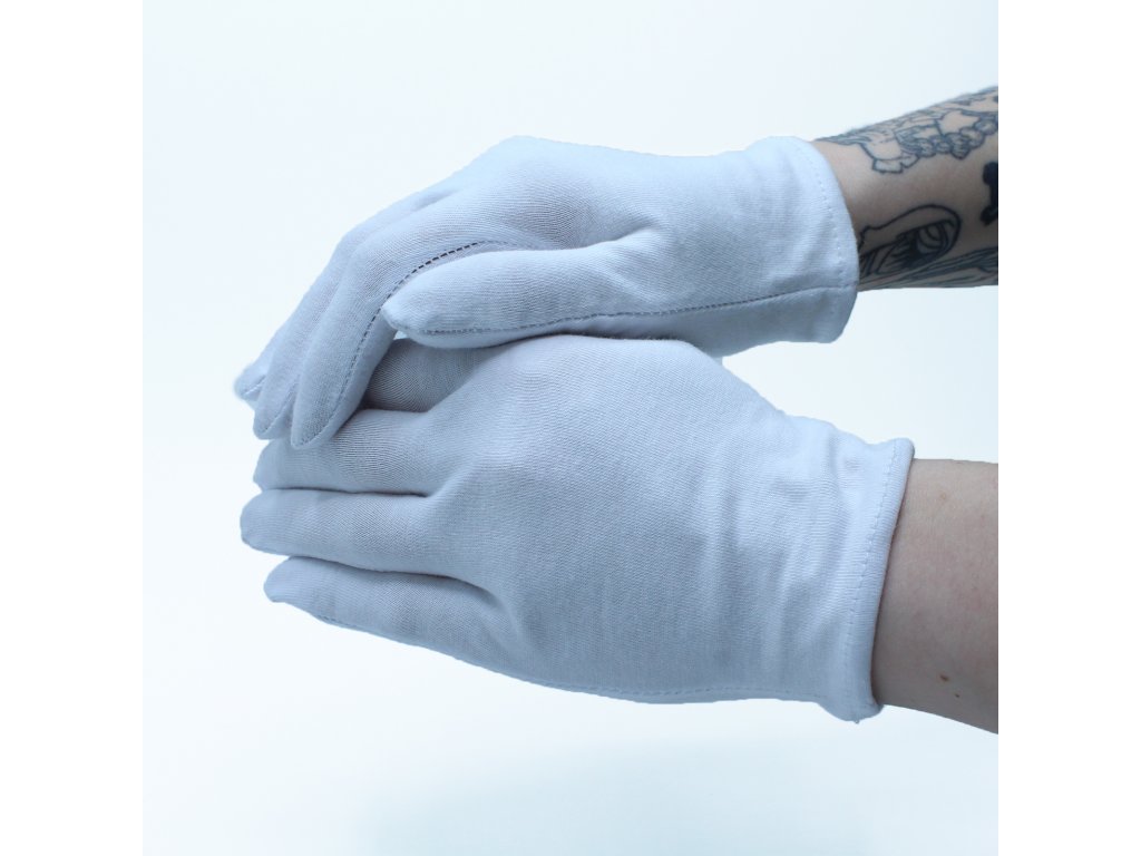 Jsou vyrobeny z bavlny s malým množstvím lycry, díky čemuž jsou mírně elastické. Rukavice nemají těsnou manžetu, takže jsou velmi pohodlné na nošení. Jsou vyrobeny z bavlny a mezi jednotlivými použitími je lze prát.