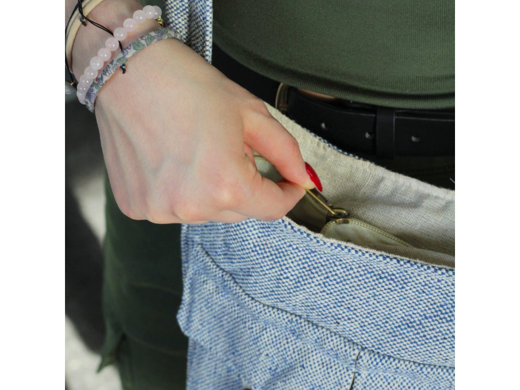 Vyrobeno z nejjemnější bavlny, slibují odolnost a pohodlí v jednom elegantním balení. Promyšlený design obsahuje dvě přední kapsy zajištěné knoflíky, ideální pro věci, které potřebujete mít po ruce, a vnitřní přihrádku na zip na všechno ostatní.
