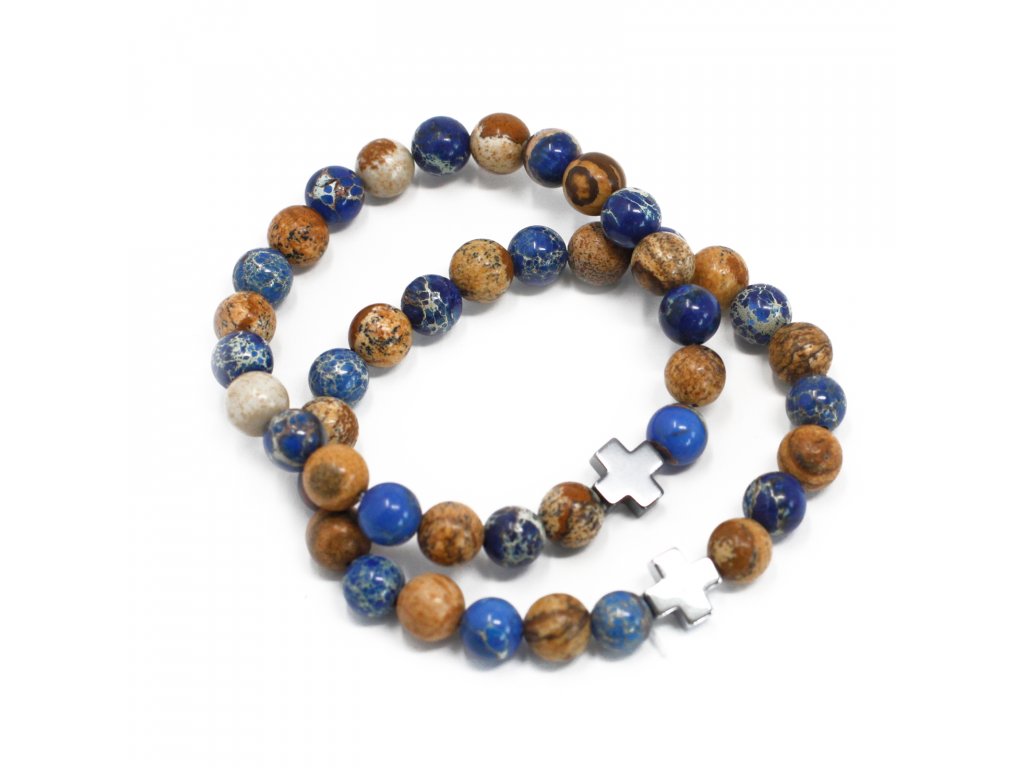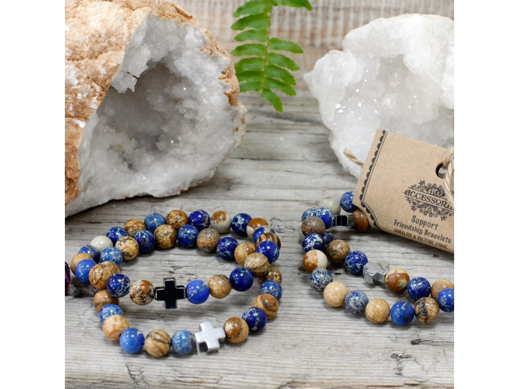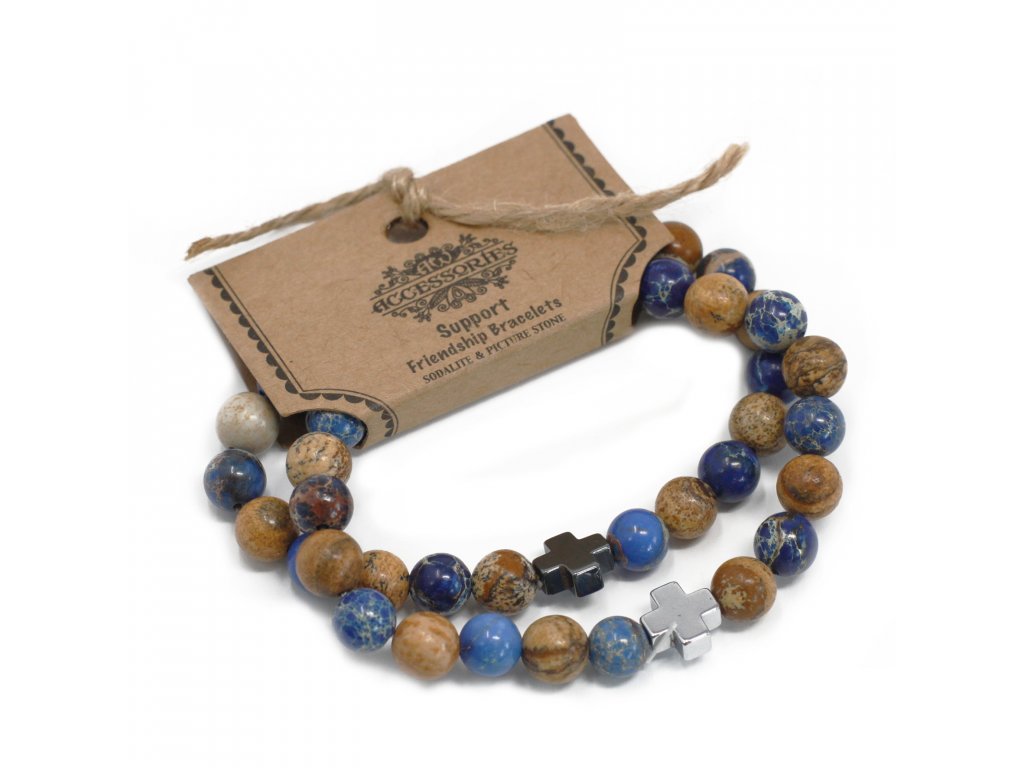 AWM Sada 2 náramků přátelství z drahých kamenů - Podpora - Modrý sodalit a obrázkový kámen 1 ks