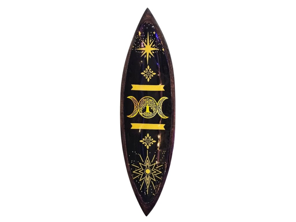 AWM Smaltovaná Miska na Vonné Tyčinky - Mangové Dřevo - Trojitý Měsíc 1ks