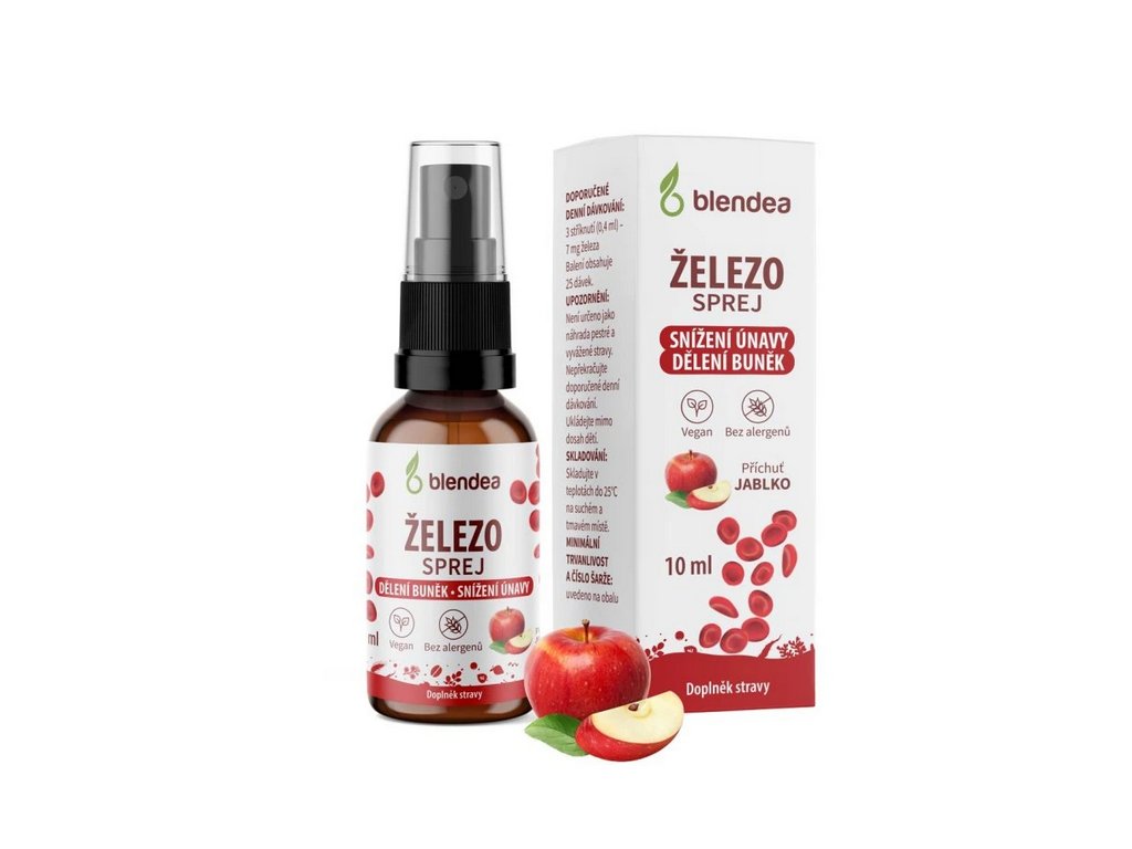 Tento Blendea sprej doplní potřebné železo a zároveň chutná po jablkách. Stačí 3 stříknutí a polovinu doporučené denní dávky máte splněnou (zbytek by měla ideálně zařídit pestrá strava). Díky tomu se budete cítit plní energie a nebudete muset užívat několik kapslí denně.