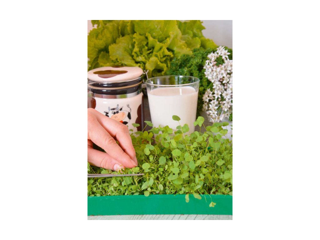 Pěstování mikrozeleniny: POZOR! Substrát by neměl být během celé kultivace příliš vlhký. 1. Plochou nádobu naplňte zeminou, poté ji zarovnejte a zalijte. 2. Semena nasypte hustě po celém povrchu. 3. Dvakrát denně pokropte vodou a pěstujte 2–3 týdny. Rostliny seřízněte, jakmile vytvoří první listy.