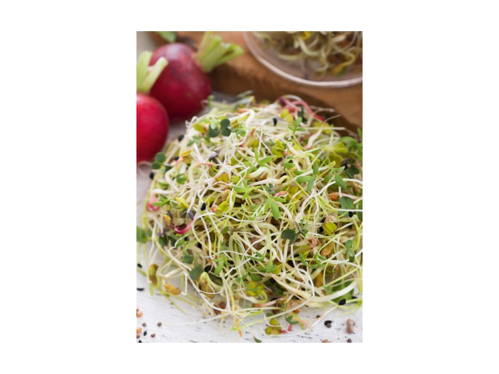 Směs obsahující semena: hořčice, jetel, potočnice, ředkev a pažitka, jejichž klíčky se vyznačují vynikajícími posilujícími vlastnostmi regulujícími činnost těla. Je bohatým zdrojem vitamínu C a lehce stravitelného hořčíku a vápníku. Propláchnutá semena vložte do čisté nádoby a zalijte vlažnou převařenou vodou a nechte 3–6 hodin odstát. Poté vypusťte vodu, opláchněte semena, nádobu zakryjte gázou, zavažte ji a umístěte na teplé místo bez slunce.