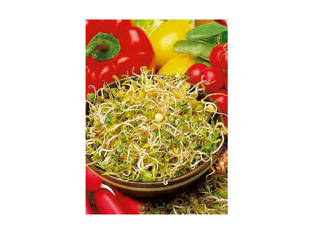 Vybraná směs ředkvičkových a čočkových semen ve správném poměru tak, aby ostrá chuť ředkvičky byla vyvážena mírnou chutí čočkových klíčků. Kromě své chuti se tyto klíčky vyznačují vysokým obsahem vitamínů a minerálních solí. Propláchnutá semena vložte do čisté nádoby a zalijte vlažnou převařenou vodou a nechte 3–6 hodin odstát. Poté vypusťte vodu, opláchněte semena, nádobu zakryjte gázou, zavažte ji a umístěte na teplé místo bez slunce.