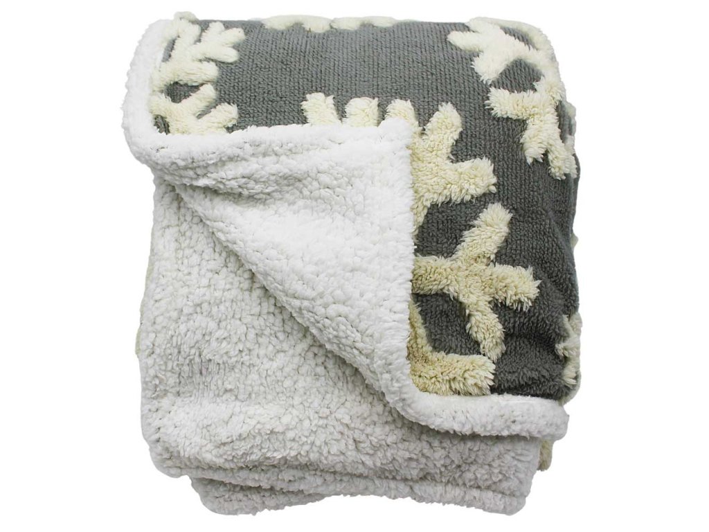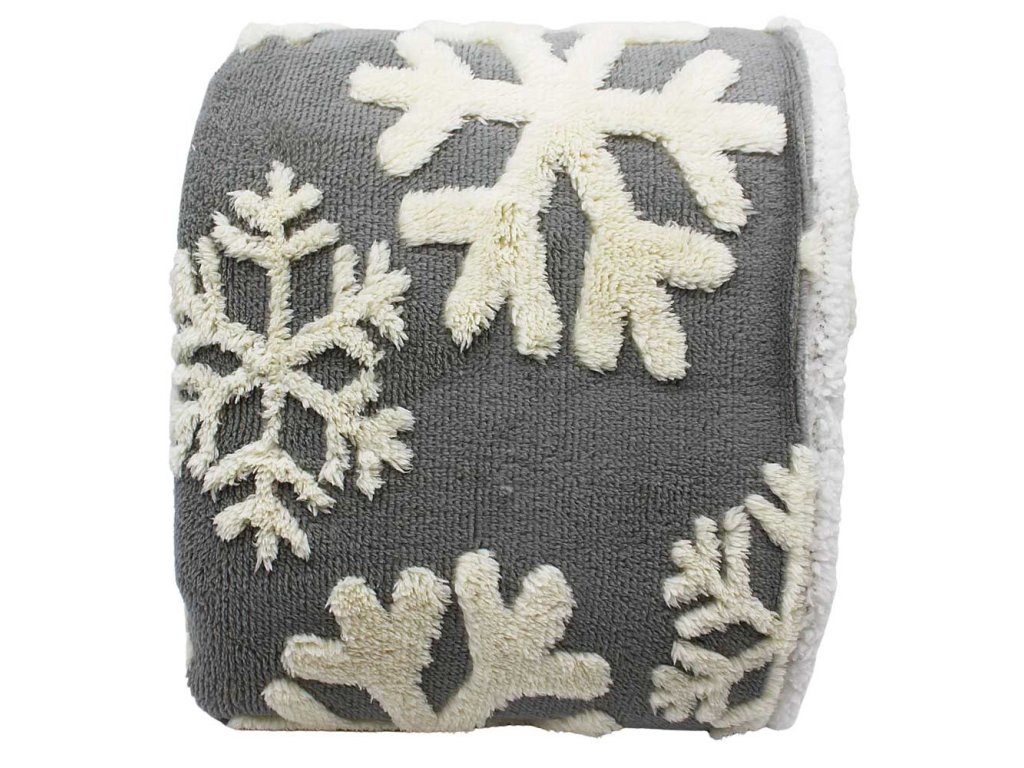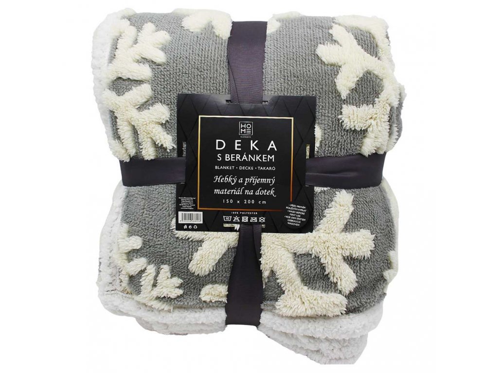 HOME ELEMENTS Beránková deka zimní vzor s vločkami šedá 150 x 200 cm 1 ks