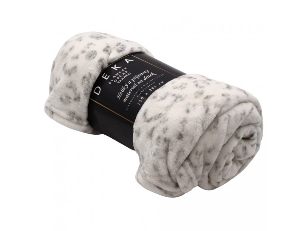 Deka je v čistě bílé barvě s drobným tmavším potiskem. Ale můžete si z naší nabídky vybírat deky v nejrůznějších jiných barvách, které budou ladit s vaším interiérem a dodají do místnosti barevný dekorativní prvek.