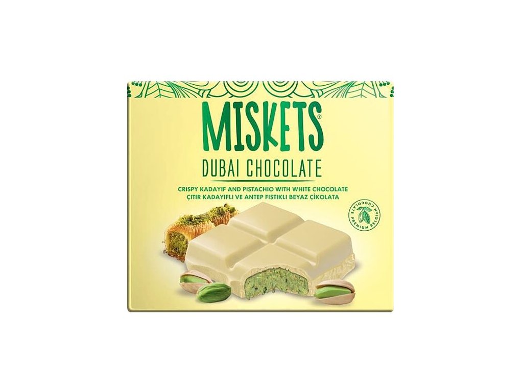 Miskets Dubajská bílá čokoláda s pistáciovou náplní a nudlemi kadayif 100 g