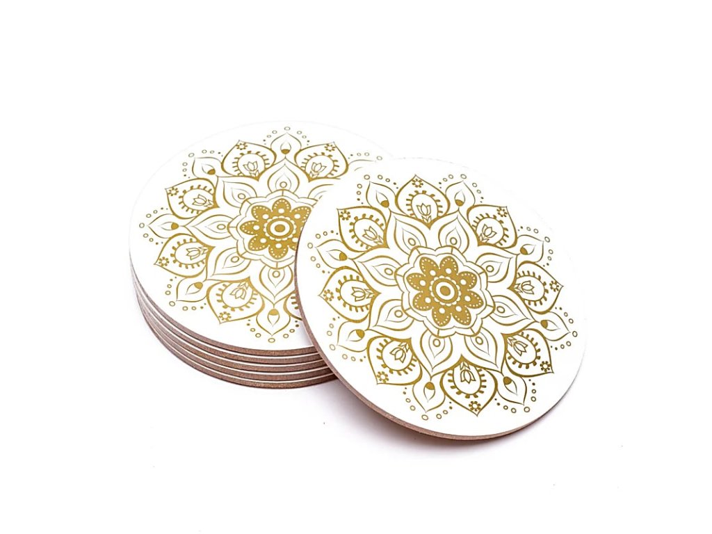 Sada podložek pod sklenice Mandala bílá 6 ks