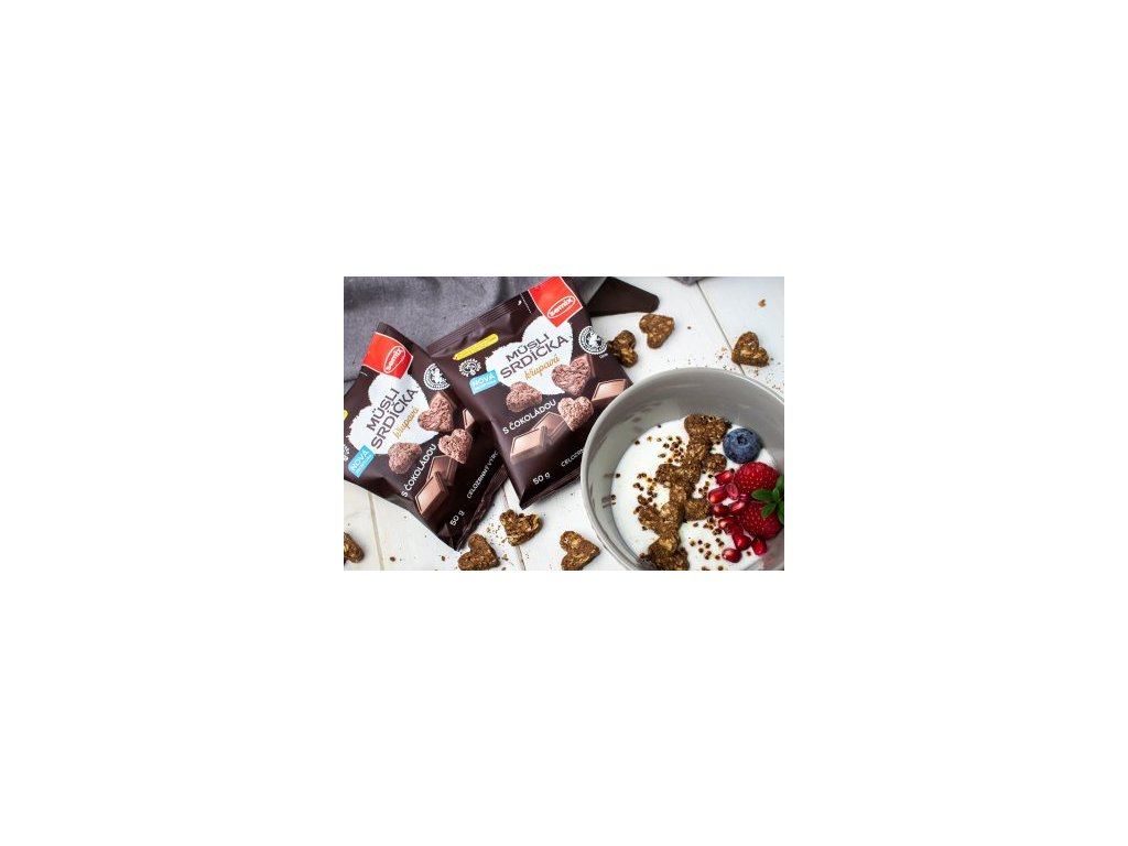 Složení: OVESNÉ vločky 52 %, cukr, čokoláda 8 % (kakaová hmota*, cukr, kakaové máslo*, emulgátor: lecitiny), olivový olej, kokosový tuk, rýžový extrudát, strouhaný kokos 4 %, agávový sirup, kakao* 1 %, mořská sůl, přírodní aroma. Výrobek může obsahovat stopy sóji, skořápkových plodů a mléka.