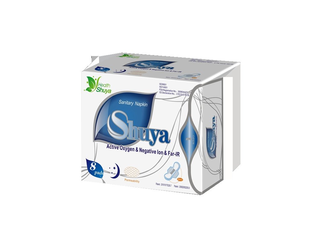 Shuya Health aniontové bavlněné vložky s preventivním účinkem pro noční použití.Výrobky Shuya Health obsahují 3 unikátní a patentované technologie: