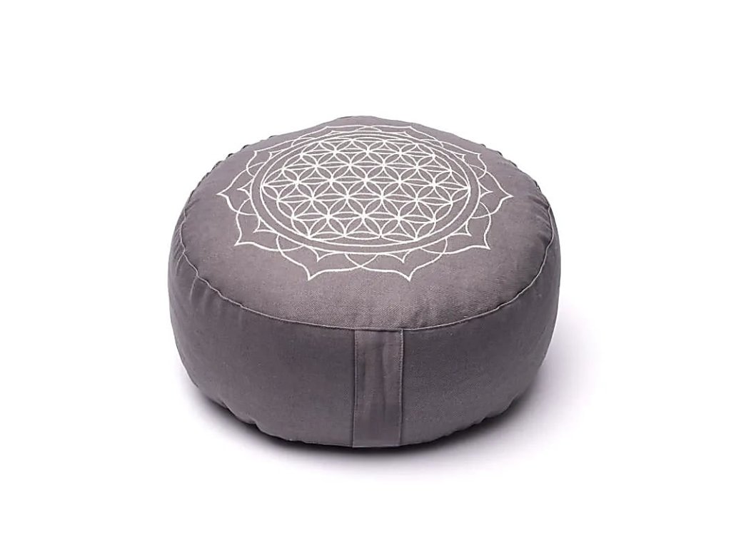 Yogi & Yogini Naturals Meditační polštář design Květ života mandala šedý z bílé organické bavlny 1ks