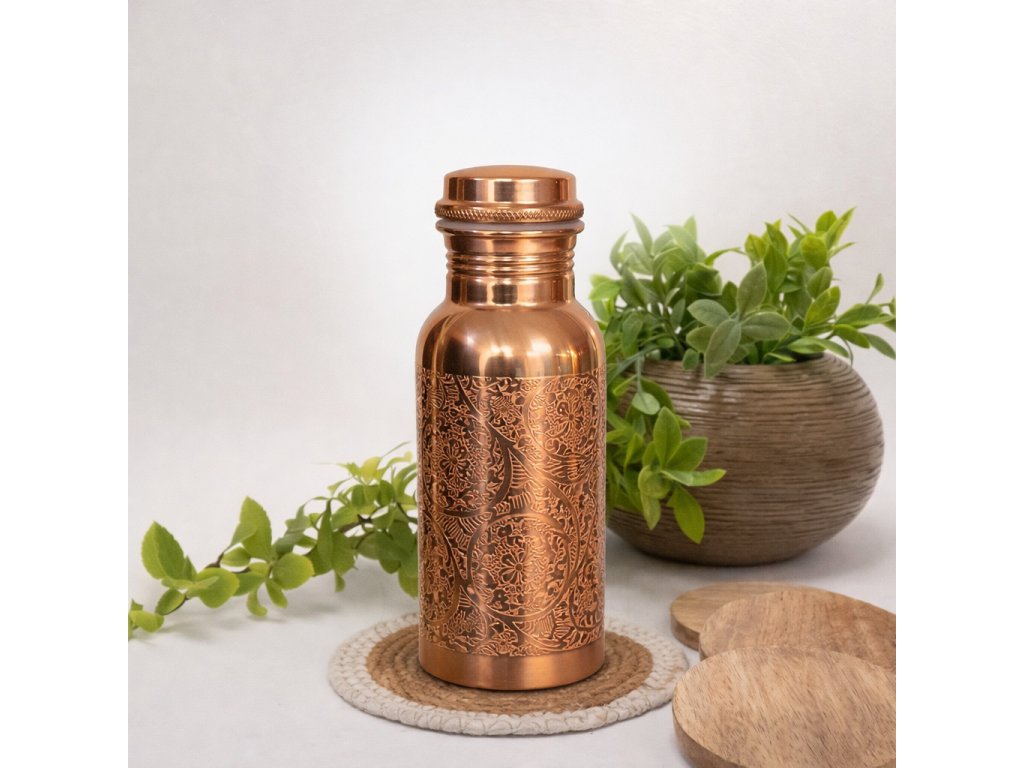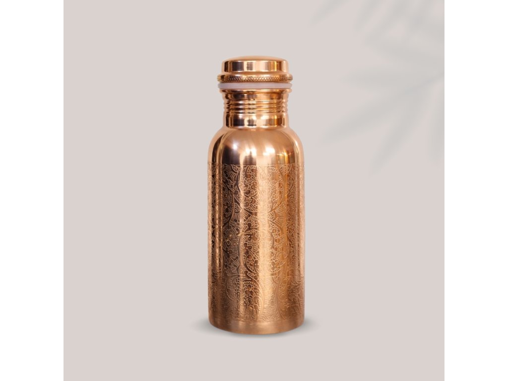 Ayurvéda už od staroveku obhajuje výhody pitia vody z medených nádob na pitie. Ajurvéda uvádza, že udržiavanie vody v medenej fľaši alebo pohári po dobu 8-10 hodín má vyrovnávací účinok na tri bioenergie (dóše), ktoré cirkulujú v ľudskom tele (Vata: element vzduchu, Pitta: element ohňa a Kapha: element vody). Okrem toho sa voda v medených nádobách na pitie stáva prirodzene zásaditou, čo pomáha udržiavať vyváženú hladinu pH. Prečítajte si viac tu.
