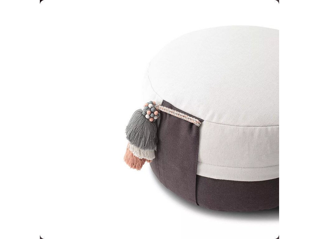 MEDITAČNÝ VANKÚŠ NA JOGU - V nadčasovom dizajne a s krásnym strapcom na rukoväti; Možno použiť na jogu, meditáciu, pilates, relaxáciu alebo ako exkluzívny sedací vankúš na podlahu.