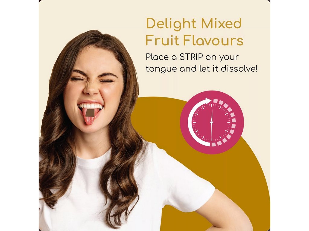 Vďaka inovatívnej technológii sa pásik rozpustí priamo na jazyku a aktívne látky sa rýchlo dostanú do vášho krvného obehu. To znamená, že cítite účinky rýchlejšie než pri tradičných doplnkoch, ktoré musia prejsť tráviacim traktom. Navyše, naše pásiky sú bez cukru a majú osviežujúcu ovocnú príchuť, ktorú si zamilujete.