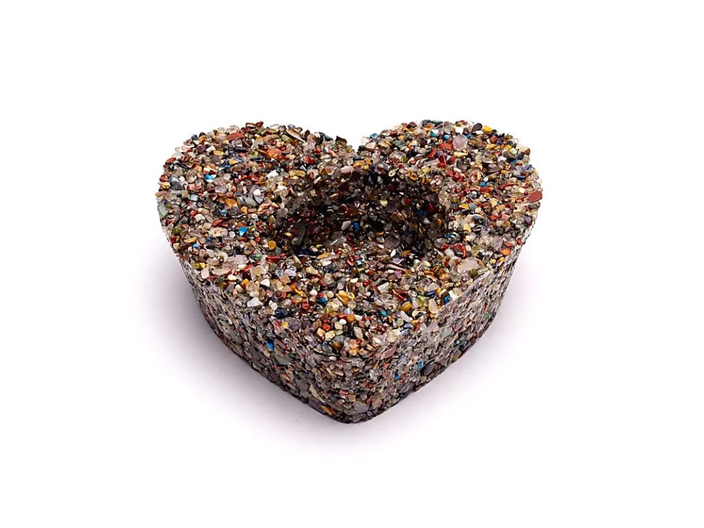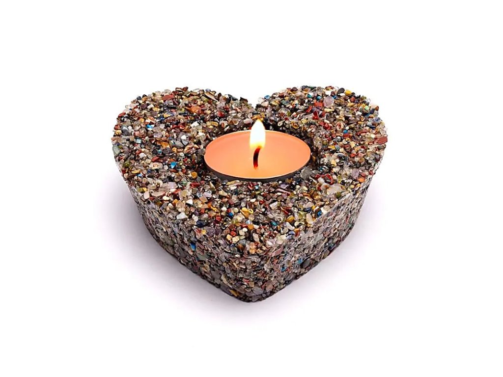 Svietnik na čajovú sviečku v tvare srdca vyrobený z rôznorodej zmesi minerálov