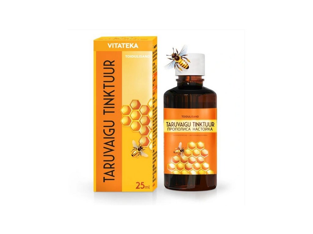 etanol (etylalkohol), voda, extrakt z propolisu 1:10. Obsahuje 68 % alkoholu.