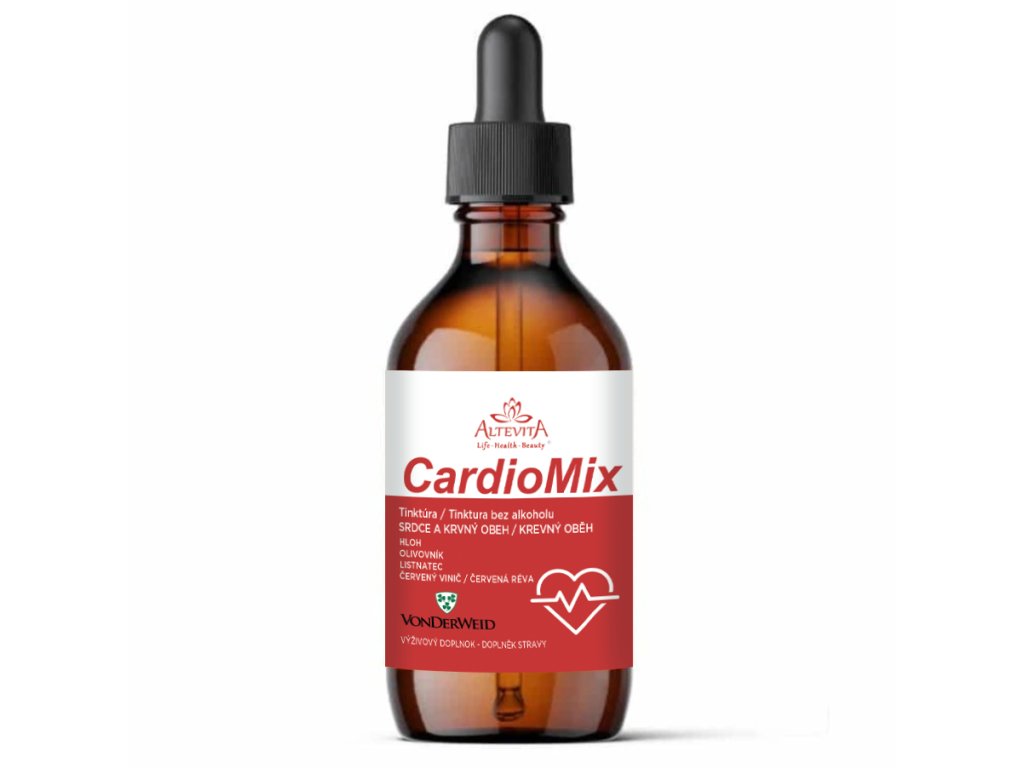 Cardiomix je unikátna bylinná tinktúra bez alkoholu, ktorá komplexne podporuje zdravie srdca a krvného obehu. Táto starostlivo vyvinutá zmes obsahuje extrakty z tradičných rastlín, ktoré sú známe svojimi blahodarnými účinkami na cievy, srdcový sval a mikrocirkuláciu. Vďaka inovatívnej ultrazvukovej extrakcii sa využíva celý rastlinný materiál, čo zaručuje vysokú účinnosť a kvalitu produktu.