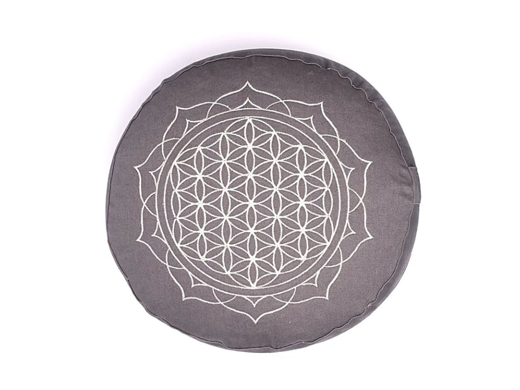 Yogi & Yogini Naturals Meditačný vankúš dizajn Kvet života mandala sivý z bielej organickej bavlny 1ks