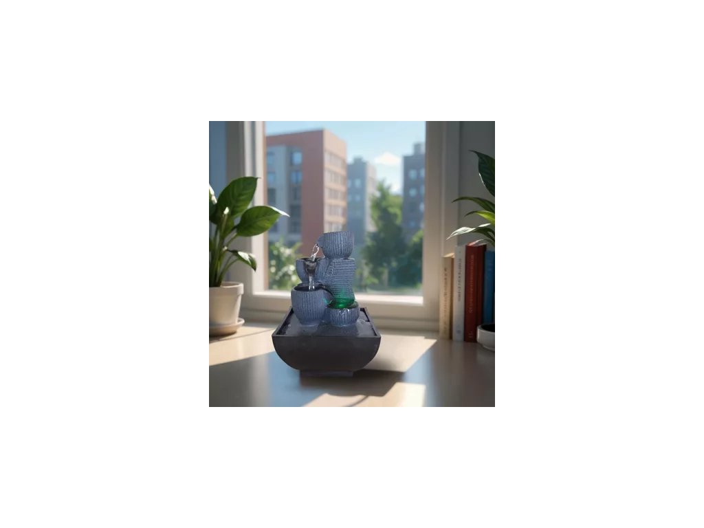 Jej prúdenie na 4 úrovniach s rôznymi nádržami je zvýraznené farebným LED osvetlením. Moderná a pomerne decentná, skutočne inšpiruje k dokonalosti. Na živici a farbe bola vykonaná kvalitná práca, aby jej dodala tento prirodzený a realistický vzhľad.